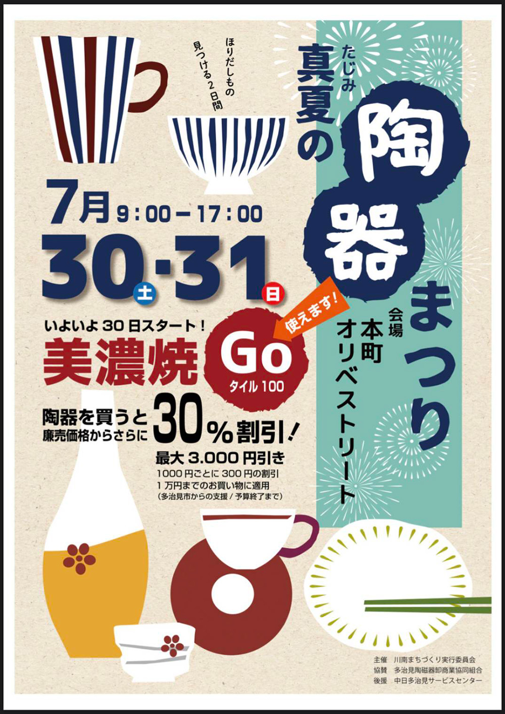 2022年7月30日(土)より、美濃焼などがお得に買える「美濃焼GO タイル100」が開催されます。